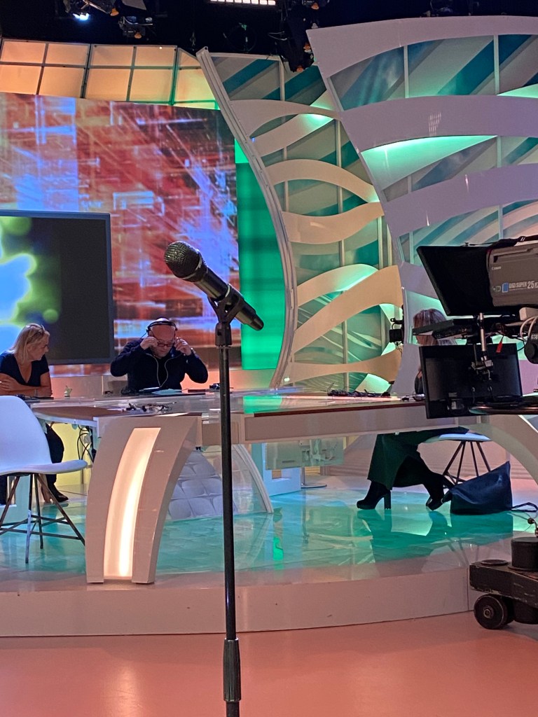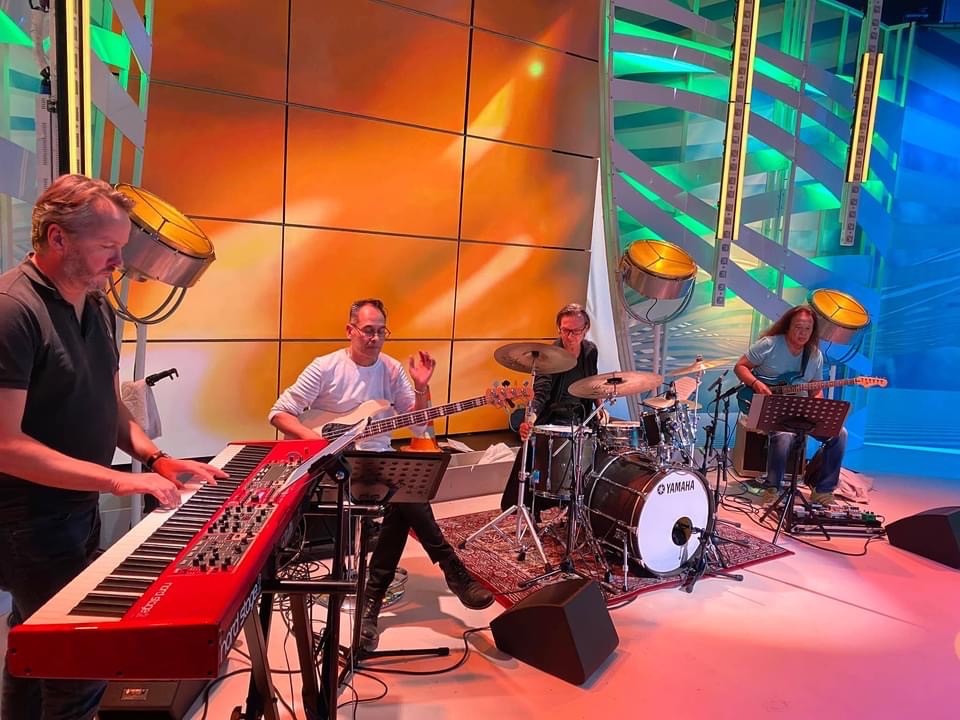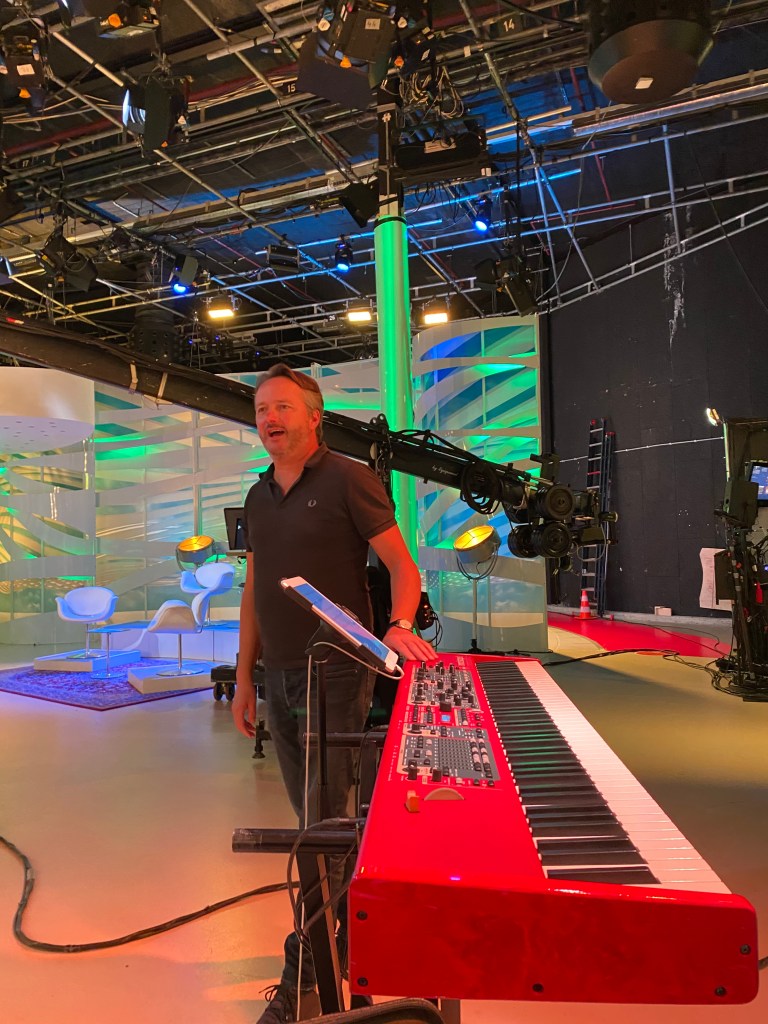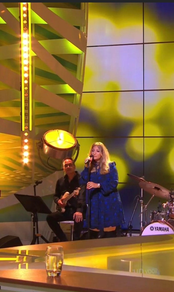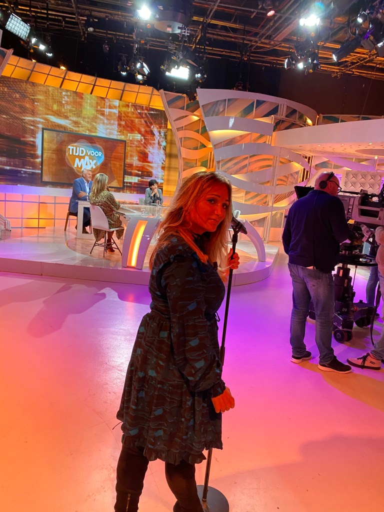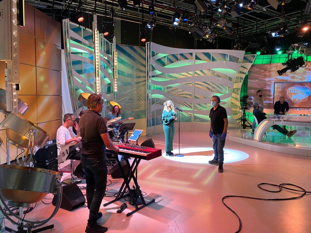 Om 14.30u was de soundcheck en daarna speelden we de liedjes nog vele keren door zodat ze meteen konden repeteren met de camera’s. Ik zag ze voorbij vliegen hoor die dingen. Na ons omgekleed te hebben en geacclimatiseerd te zijn lopen we met z’n allen naar beneden om plaats te nemen voor de show die rond 17.00u begint. Het geluid en alles is perfect geregeld voor ons als muzikanten en voor Joanna was ook alles prima geregeld. Het is nu een kwestie van concentratie want je bent gewoon live on the air! Elke noot moet gewoon bam! raak zijn! Het aftellen begint en het progamma wordt aangekondigd door de presentatoren en dan openen wij Tijd voor MAX. Als ik het zo zeg dan klinkt dat best wel stoer! Gewoon het progamma openen waar die dag 582.000 mensen naar keken! Het progamma ging van start en later in de show kwam het interview met Joanna. Tja, dat heeft heel veel los gemaakt bij vele mensen. Zelfs in de studio was iedereen even stil van het hele verhaal. En dan, dan moet Joanna gaan zingen. En omdat zij de hele tijd die foto’s achter de presentatoren op het scherm voorbij ziet komen krijgt zij een brok in haar keel en wordt ze natuurlijk emotioneel. Dus de mensen die denken dat ze nerveus was, nee dat was de emotie. En ja, probeer maar eens te zingen met een brok in de keel. Zij heeft zich er fantastisch doorheen geslagen…echt respect! Iedereen van ons was gewoon chill en zenn voor en tijdens de uitzending. Dat heeft mede te maken met de familiare sfeer die op de studiovloer hing. Echt iedereen daar is vriendelijk en de presentatoren komen je ook persoonlijk groeten met alle covid maatregelen in acht nemend natuurlijk.