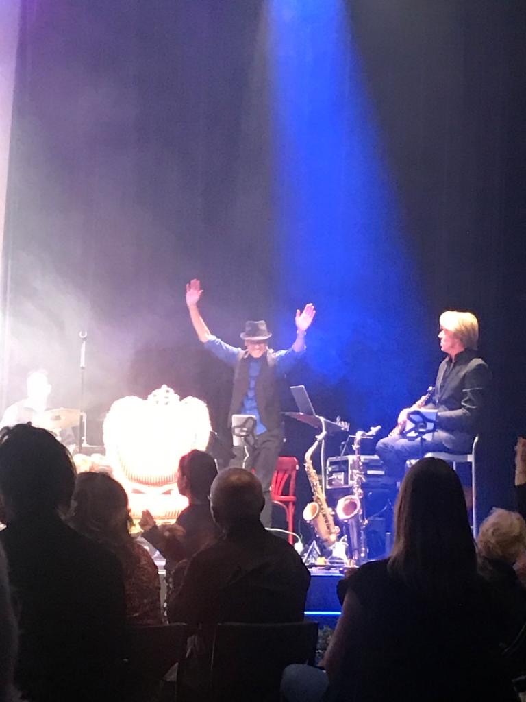 De band is inmiddels opgebouwd en het wachten is op de soundcheck. Nu ging dat niet van een leien dakje. Je moet begrijpen dat onze geluidstechnici afhankelijk zijn van de technicus van het theater zelf en die was volgens mij niet altijd even duidelijk en even snel. En was de hele tijd buiten zijn sigaretjes aan het roken als ze hem nodig hadden terwijl er binnen problemen waren. Voor zover ik het heb kunnen zien zat er geen tempo in bij die man terwijl wij met man en macht alles op tijd klaar probeerden te krijgen. Nu versta ik dat technisch taaltje en dat voorspelde niet veel goeds wat ik hoorde. En ja hoor, de monitoring was niet goed aangesloten en daardoor hoorden wij op het podium niet wat we moesten horen en als aan het ene knopje gedraaid werd gingen andere instellingen mee etc. Voor onze technici was het een ramp om alles op tijd opgelost te krijgen. Maar voor ons werd het echt een probleem. Geen soundcheck met band en Joanna tegelijk. Eigenlijk was er helemaal geen soundcheck en iedereen had een monitor probleem. Daar zat ik dan met mijn Inears waar ik een verschrikkelijke mix op had waar alles uit balans was. Joanna had ook bijna geen tijd meer om zich te verkleden en voor haar visagie en dat komt nog eens bovenop een niet goede monitormix. En dus werd de middagshow die om 14:30 begon een worsteling,…hoe kon het ook anders. De show is gelukkig goed ontvangen maar het had een geweldige show kunnen worden. Wij werken tijdens twee nummers met sequencers en die hoorden we dus ook niet goed terug en probeer dan maar goed getimed mee te spelen. Tijdens het spelen zag ik gewoon de hele band door de eerste show heen worstelen inclusief mezelf. Dan te bedenken dat we in de avond er nog eentje moesten doen. Maar de sfeer was en bleef goed. Misschien ietwat gespannen door al de technische problemen maar iedereen had het naar z’n zin en was tot op het bot gemotiveerd. De eerste show kwam tot z’n eind en ik voelde dat we met z’n allen opgelucht waren dat het allemaal redelijk okay was gegaan gezien de omstandigheden. Nu was het tijd om bij te komen, even een reset, samen eten, bepaalde zaken even door te spreken en de technische problemen verhelpen.
